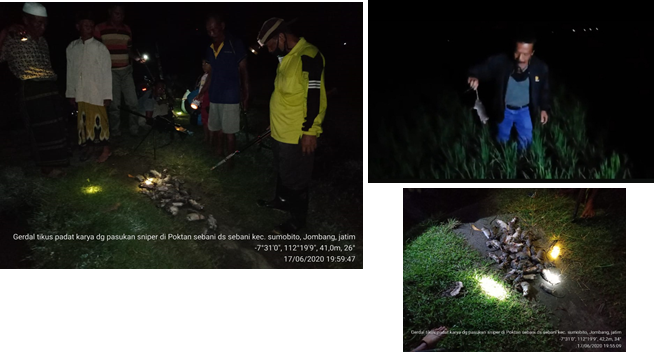Rabu, 17 Juni 2020 anggota petani Poktan Sebani yang diketuai oleh Bapak Djandji melaksanakan Kegiatan ”Gerdal OPT Tikus Padat Karya” yang merupakan kegiatan dari Kementrian Pertanian melalui Dinas Pertanian Kabupaten Jombang. Gerdal menggunakan regu tembak (sniper) dimulai jam 19.00 WIB. Turut hadir pada kegiatan tersebut adalah Bapak Sutami selaku Koordinator POPT Kabupaten Jombang, POPT Kecamatan Sumobito, Korwil PPL Kecamatan Sumobito dan PPL Kecamatan Sumobito