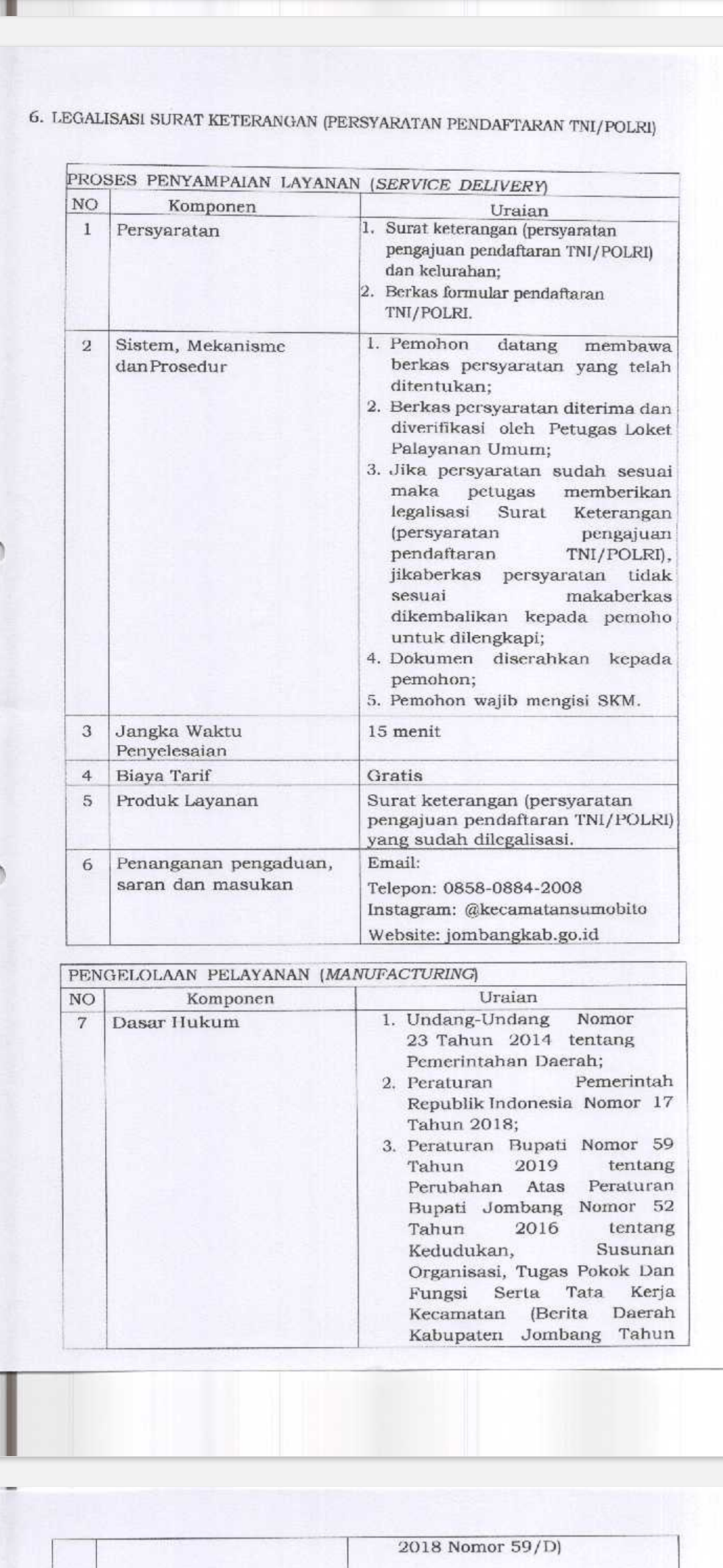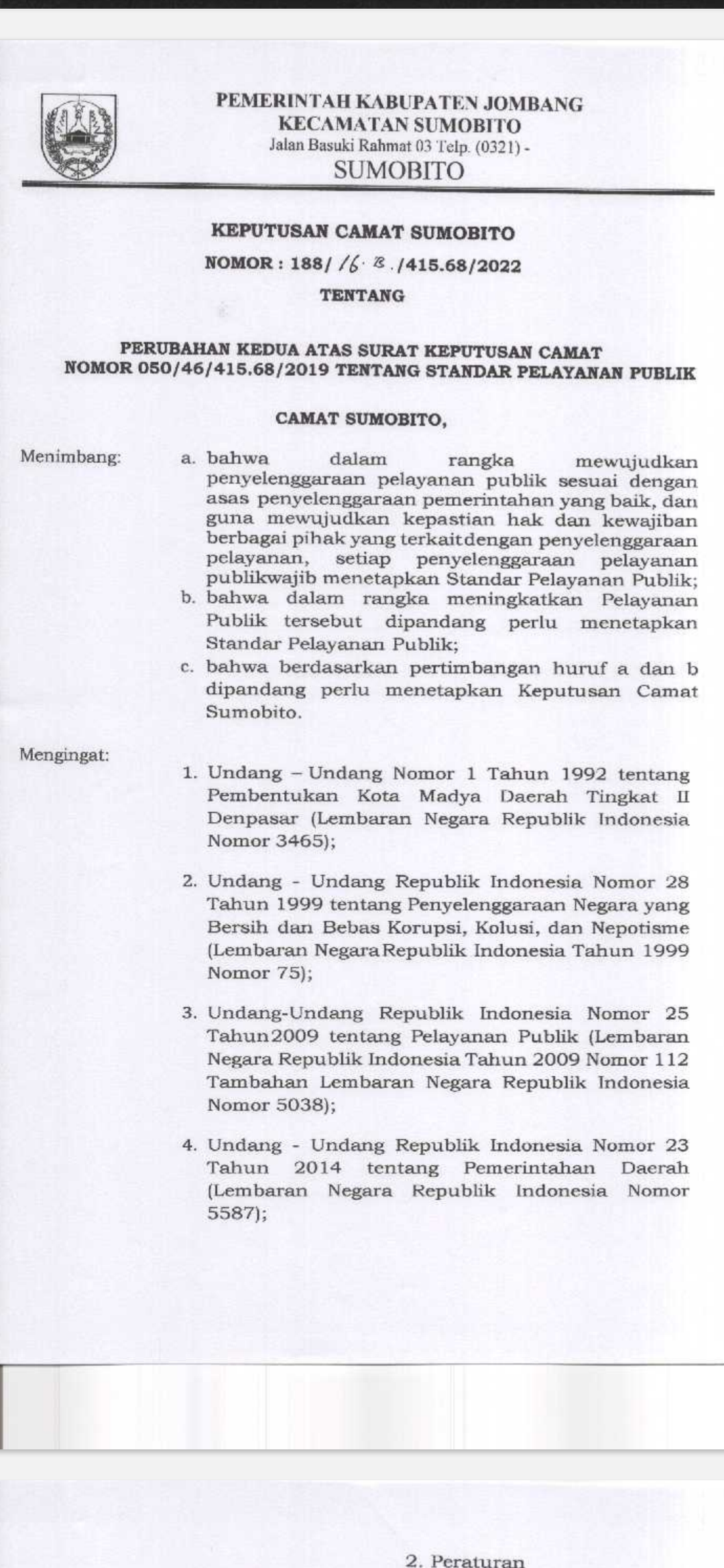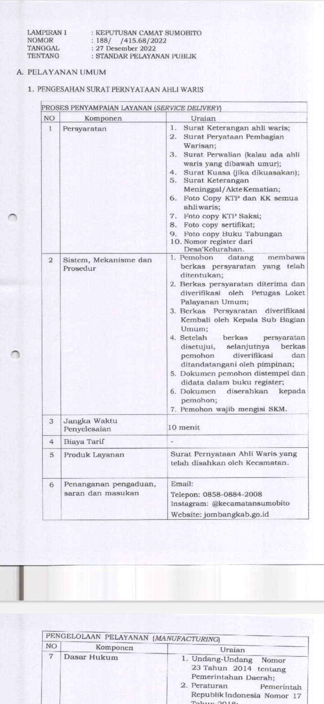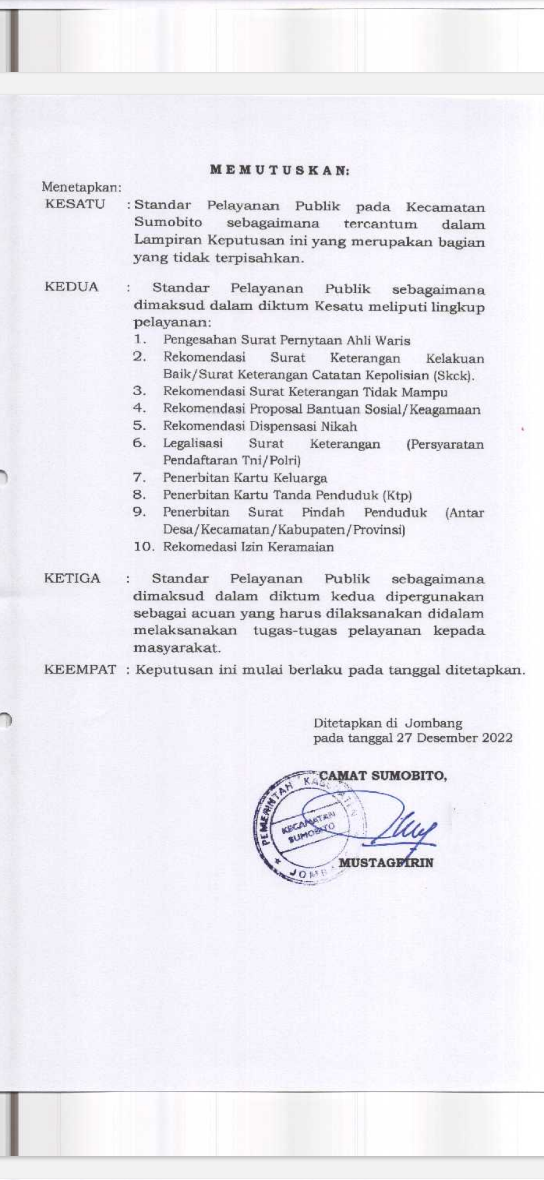Standar Pelayanan Publik PATEN Sumobito tahun 2022, penetapan 10 jenis layanan publik yang ada di PATEN Sumobito.
