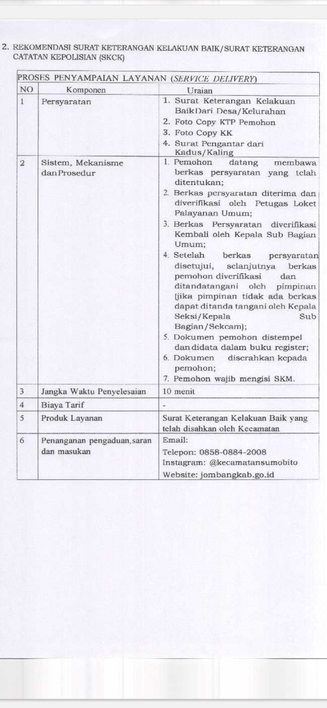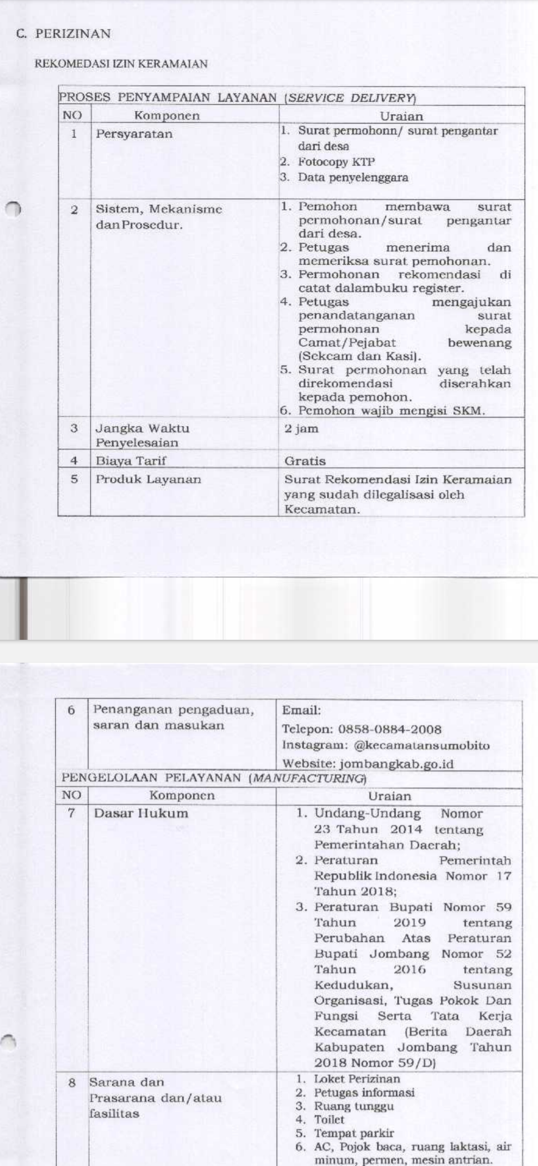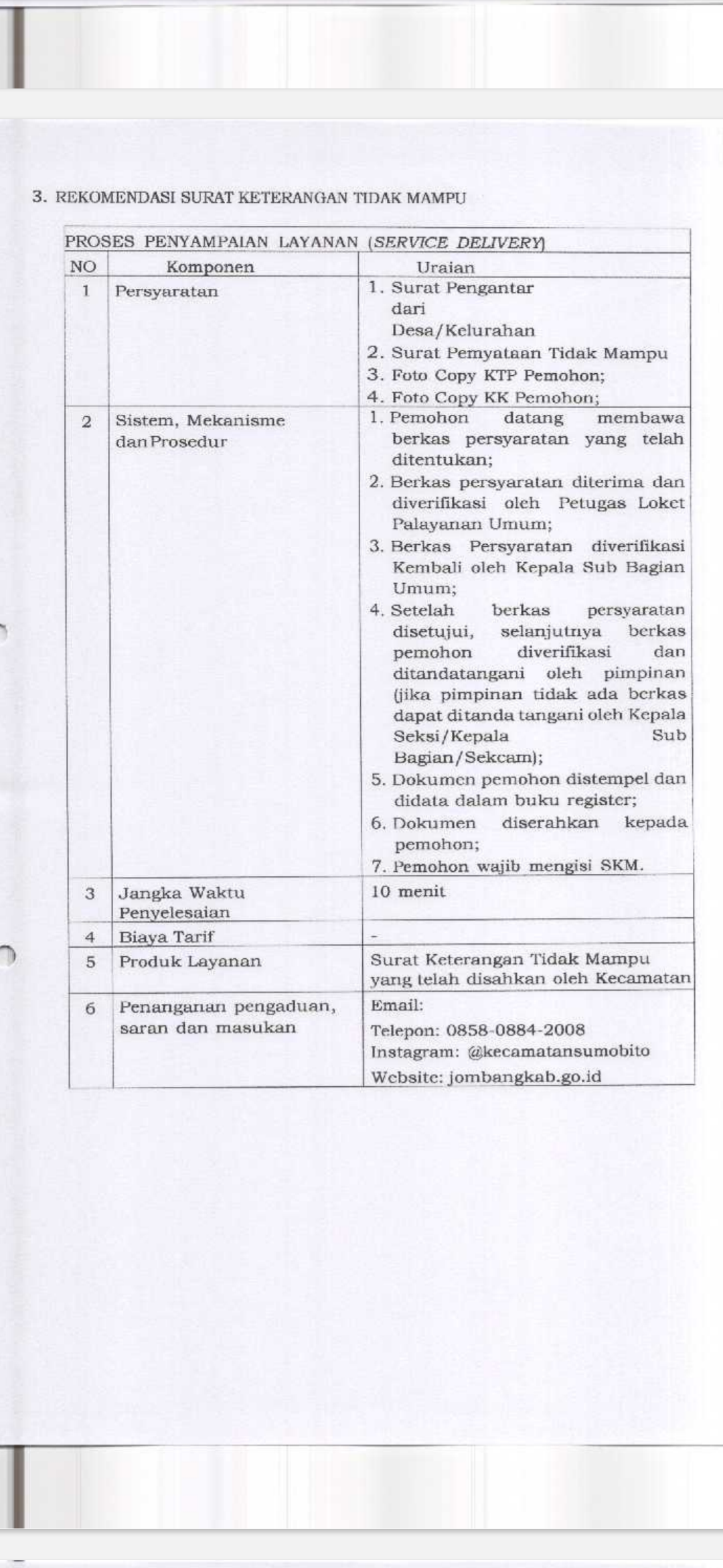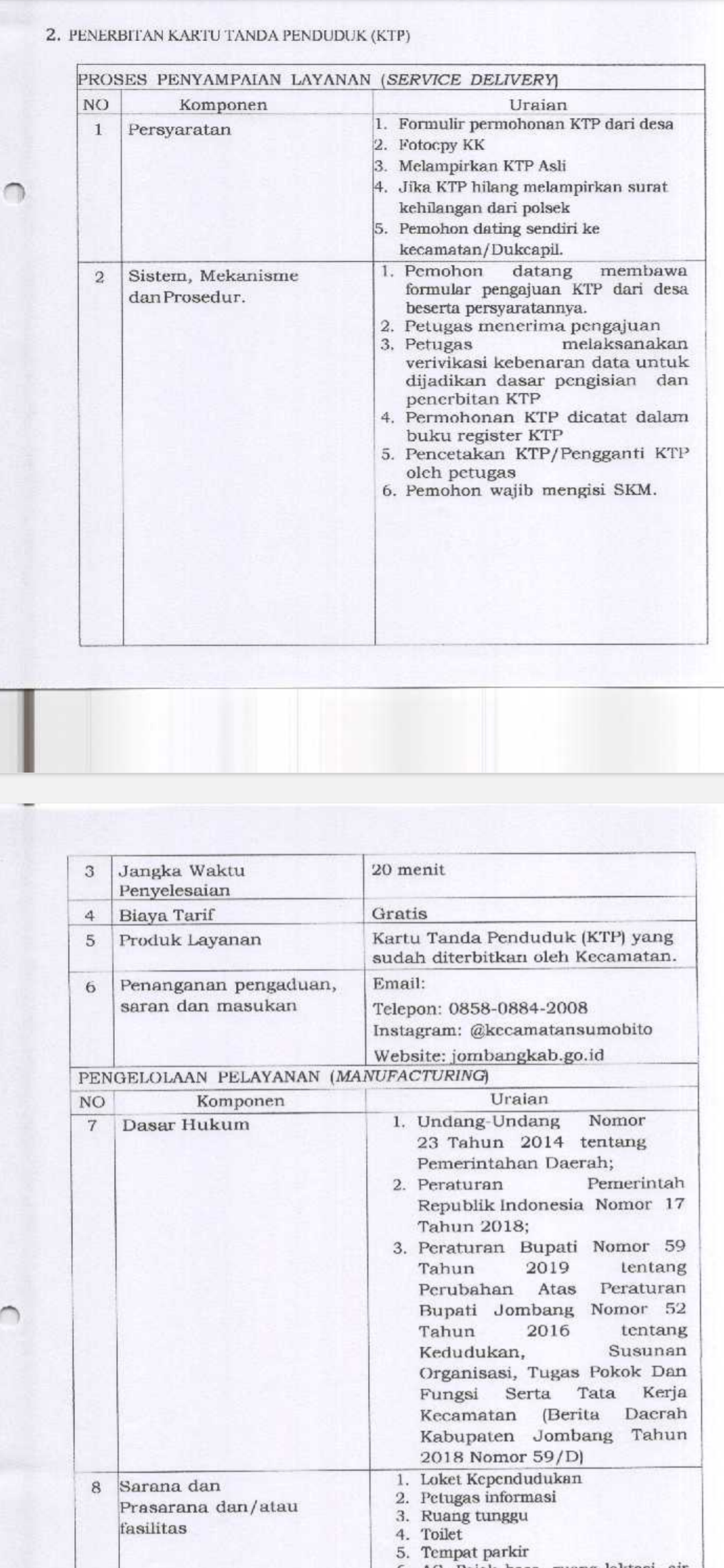 Standar Pelayanan Publik PATEN Sumobito tahun 2022, penetapan 10 jenis layanan publik yang ada di PATEN Sumobito.